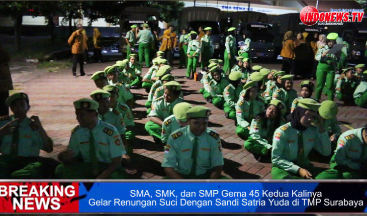 SURABAYA – indonews.tv – Yayasan Perjuangan 45 yang menaungi SMA, SMK, dan SMP Gema 45 untuk yang kedua kalinya menggelar kegiatan Renungan Suci bagi para peserta didik, usai mengikuti program kesamaptaan yang dilaksanakan bekerja sama dengan pelatih dari Koramil dan Kodim setempat.